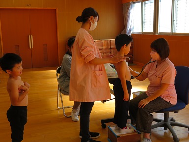 さの小児科医院の佐野先生にご来園頂き、内科検診を行いました。
