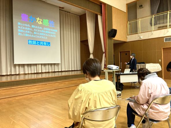 16日には浜井場小学校の木下校長先生にご来園頂き、研究会を行いました。絵画の視点からも小学校との接続の視点からもお話をお聞きすることができ、有意義な時間となりました。
