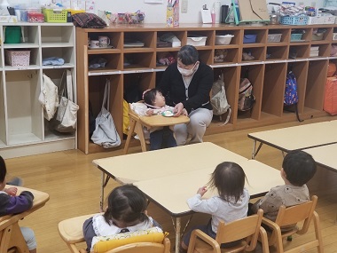 未満児のクラスには髙松先生が回って一緒にお祝いして下さいました。