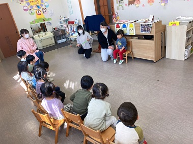 誕生者の保護者の方には朝からご来園頂き、「おとうさん先生」「おかあさん先生」として一緒に遊んでいただいたり、お子さんが生まれた時のエピソードをお話していただきます。