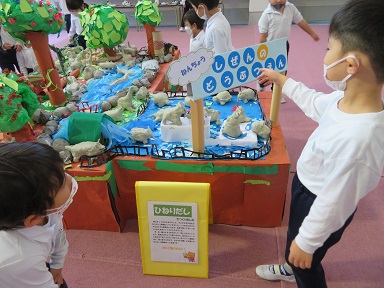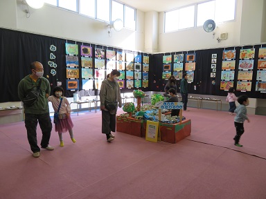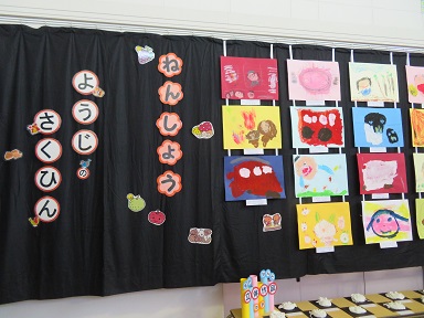 3歳以上児の懇談会の期間に合わせて園児の作品展を行っています。
