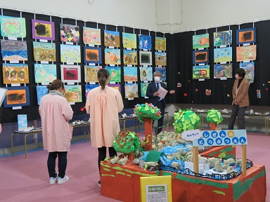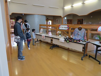 絵画1点、立体作品1点展示しています。同時にPTAの方々の作品展も行っています。