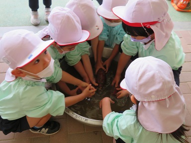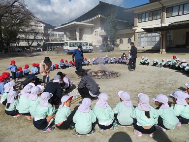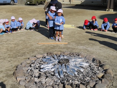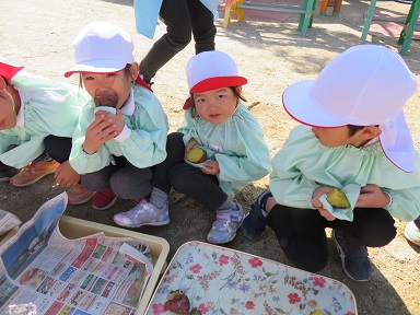 先週年長さんと未満児のお友だちが行った焼き芋、自分たちはまだかな?と待っていた年中さんと年少さんです。