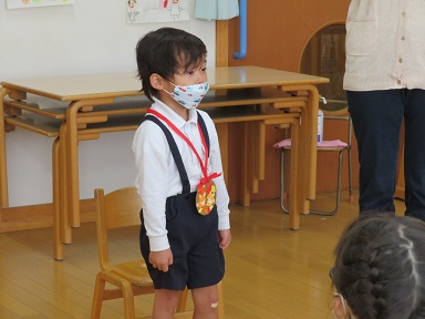 年中さんは3人。しっかり立ってお祝いしてもらうことが出来ました。