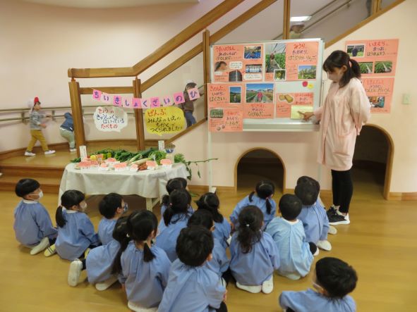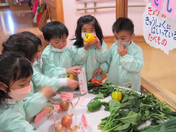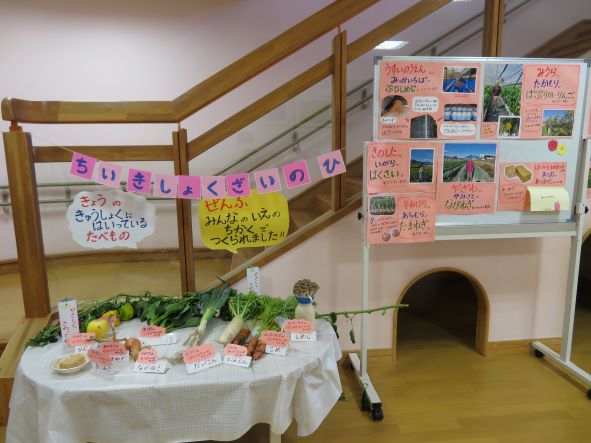 地域の食材を使うということは、輸送費を使わない(SDGs)にもかかわってきます。そんなことも年長さんに話したいと思います。