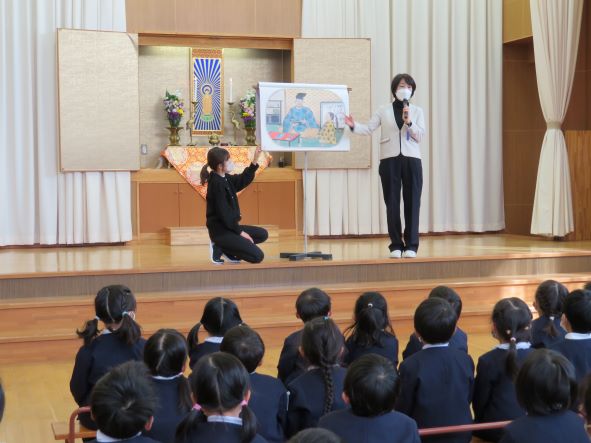 園長先生より掛図を使って親鸞様のご一生についてお話をして頂きました。