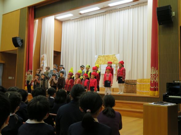 地域のコロナウイルス感染症がなかなか収まらずにいるため、「劇とリズムの会」当日は、各学年毎観客を入れ替えての発表になりました。