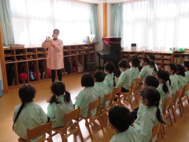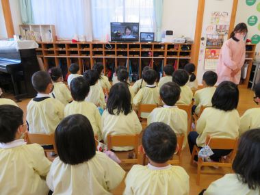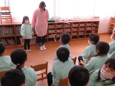 園長先生から、新しい年、自分はどうなりたいか考えて少しずつ近づける準備をしましょう。3学期の3か月で1つずつ大きくなる準備をしましょう。というお話をして頂きました。