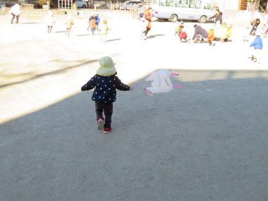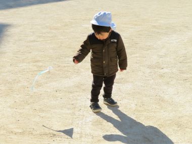 未満児のお友だちは園庭で凧あげを楽しんでいました。