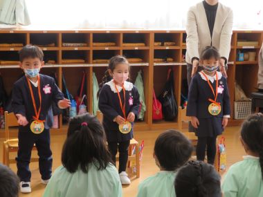 年中さんは5名でした。ペンダントをかけてもらって嬉しそう。