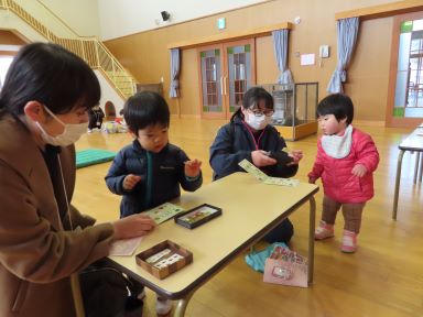 本日(17日)、『さくらんぼ』の最終回がありました。1年間に11回行う予定でしたが、新型コロナウイルスの感染拡大で中止を余儀なくされた回もあり、7回の実施となりました。それでも、親子でお越しいただき、様々な遊びや活動にご参加いただくことができ、園としても嬉しく思います。