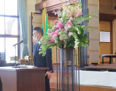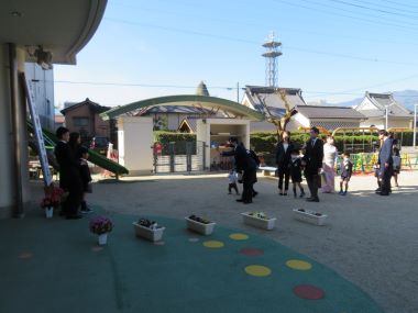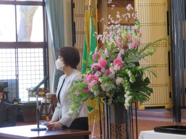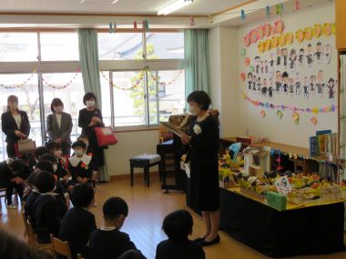 式後に、ご退職される園長先生にPTAからお花とお餞別をお渡し下さいました。