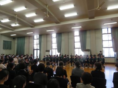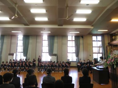 卒業生が証書を持って「蛍の光」に合わせて堂々と行進して退場しました。