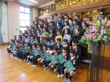 証書を頂くお辞儀の仕方や歩き方も卒業を迎える時期の年長さんらしい堂々とした姿が見られました。