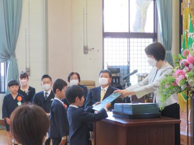 証書授与、一人ずつ名前を呼ばれて元気に返事をします。