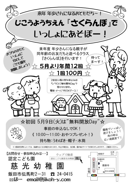 来年度年少さんになる親子が一緒に遊ぶ「さくらんぼ」を募集しています。