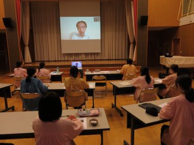 12日午後、職員は遊戯室でWebでの研修があり、園にいながら研修が受けることができました。研修で学んだことを実際の保育に活かしていきたいと思います。