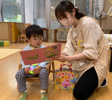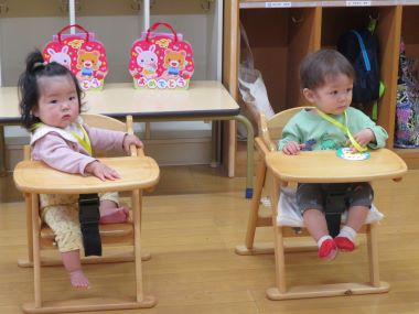 未満の4月は、つくしさんのみ誕生会を行いました。1歳になったお友だち2名。いつもと少し違う雰囲気を感じています。