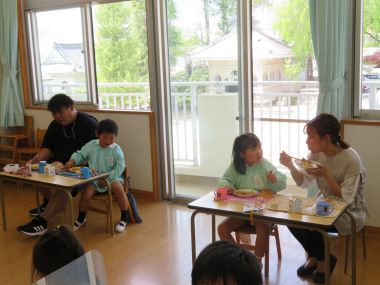 幼稚園の食事の様子を見て頂くのは初めてです。味や量や雰囲気も楽しんで頂きます。