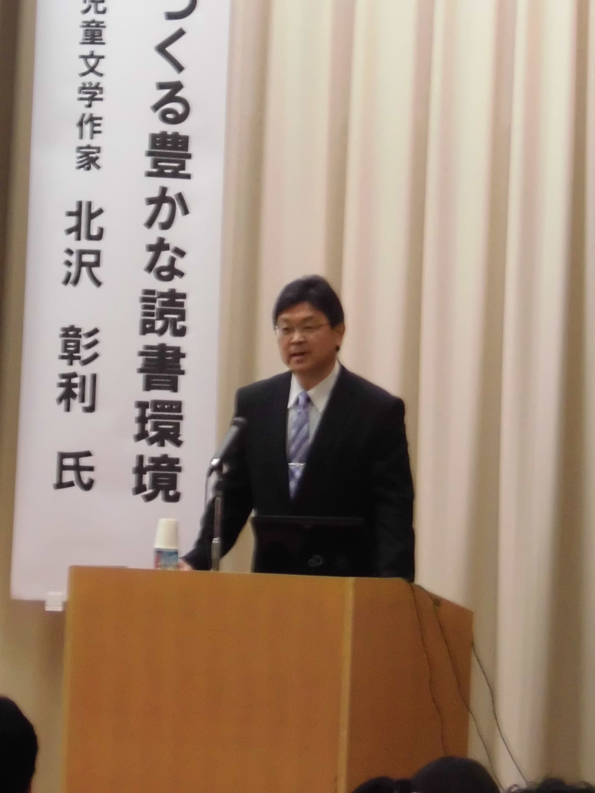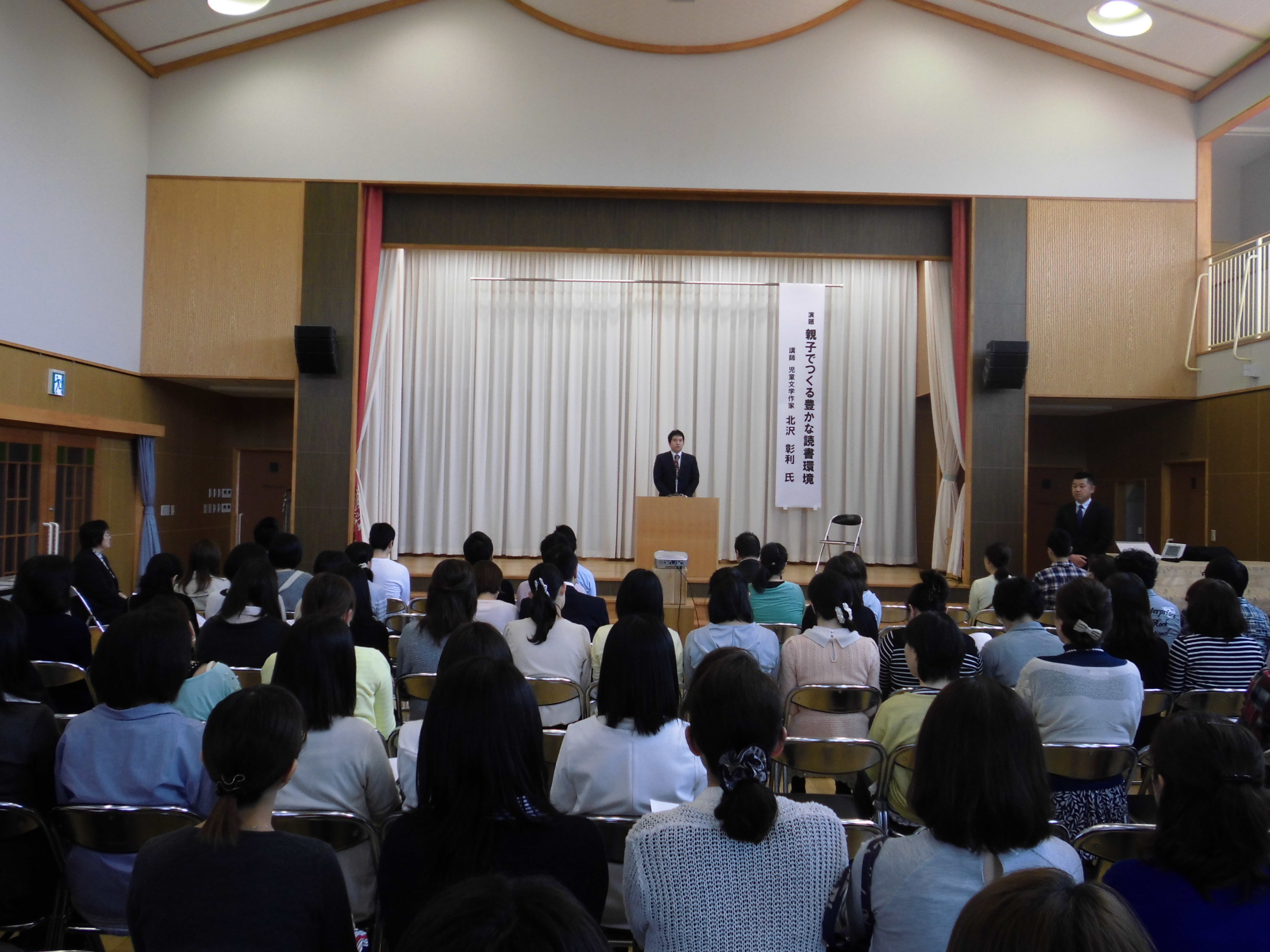 また、総会に引き続き講演会があり、『親子でつくる、ゆたかな読書環境』の演題で、児童文学作家の北沢彰利先生(前:飯田市立松尾小学校長)をお迎えしてお話をお聞きしました。