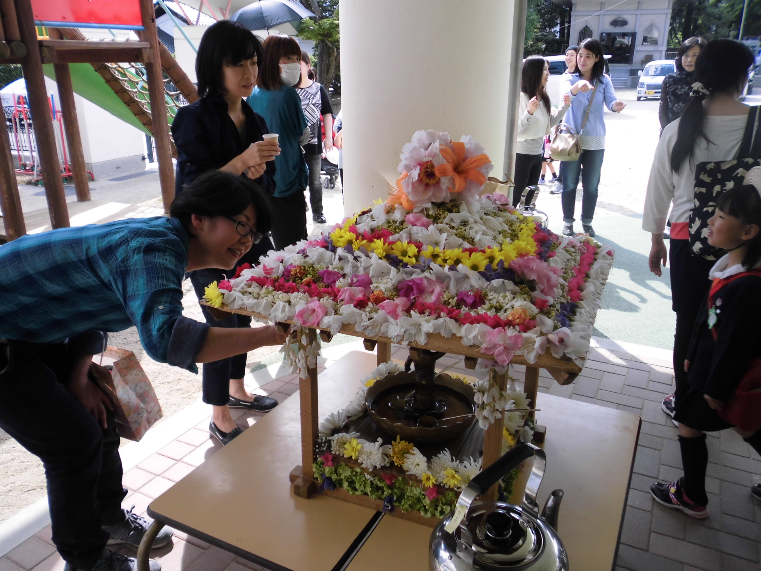 この日は地域の皆様にも参加していただいたので、年少さんと一緒に地域の方も灌仏していただきました。