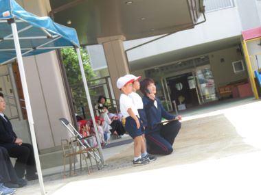 こいのぼり運動会が始まりました。『端午の節句』の歌をうたい、園長先生のお話をお聞きします。