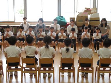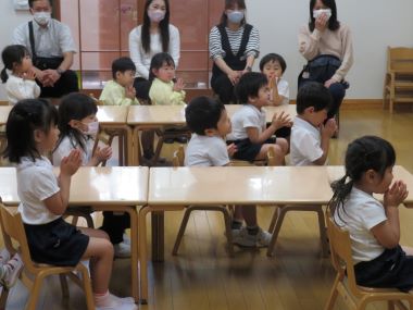 年少さん、初めての参観です。手を合わせてお参りをしています。