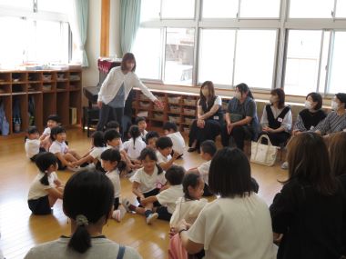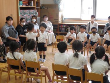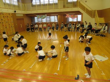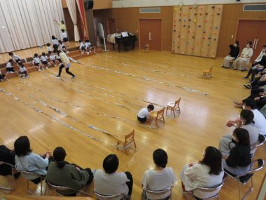 最後に、こいのぼり運動会に行った「ぼよよん行進曲」を見てもらいました。お家の方に見てもらえることが嬉しそうな年中さん。お家の方も温かく参観して下さっていました。