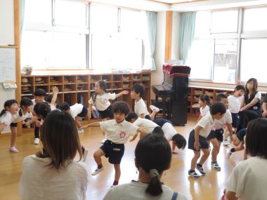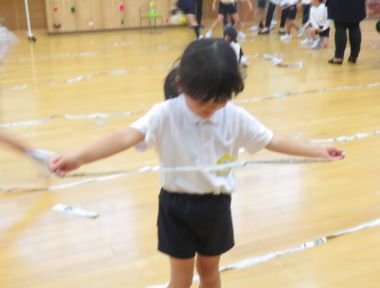 その後は「仲良しじゃんけん」 負けて悔しくても我慢してお友だちの応援ができるようになりました。