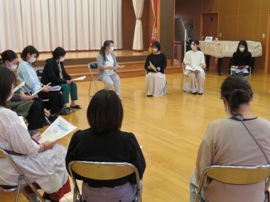 参観の後はクラス毎に懇談会を行いました。年長は園長から就学についての話をさせて頂いたり、いくつかのグループに分かれて話をしたりし、それぞれのクラスで有意義な時間が過ごせたことと思います。