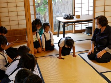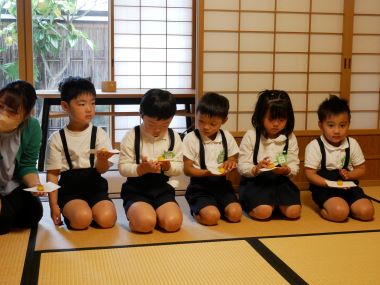 今年も元園長・髙松和子先生のご指導の下、年長さん達が「お茶のお稽古」を始めました。