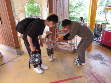 おやつの後は、お楽しみの弁慶4号に乗ります。自分で切符を買ったり運転手さんに切符を渡したりしたお友だちもいましたよ。