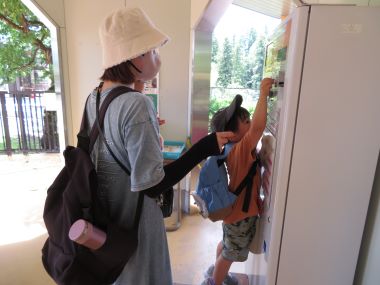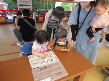 最後に動物園にある大きなシールを貼って帰ります。「どれにしようかな?」
