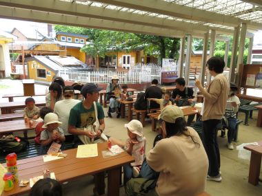 ちびっこランドの日陰でおやつです。皆で食べるとおいしいね。