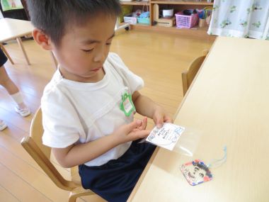 18日の父の日にちなみ、園でもお父さんについて話をしたり、歌「すてきなパパ」をうたったりし、学年それぞれに楽しみながらお父さんへの感謝を込めてプレゼントを作りました。