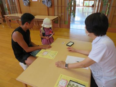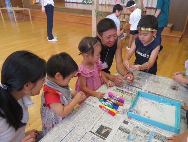 次回は9月5日、絵の具で遊びます。お家の方と楽しい夏を過ごし、また皆さんに会えるのを楽しみにしています。