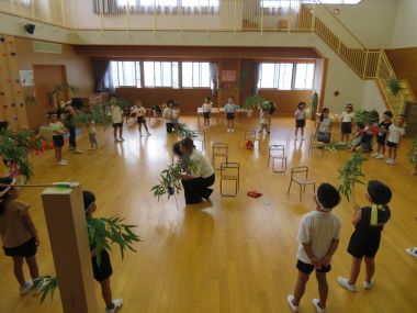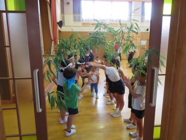 笹を持って年長さんも一緒に大きな輪になって「たなばた」の歌をうたいました。