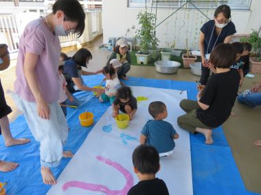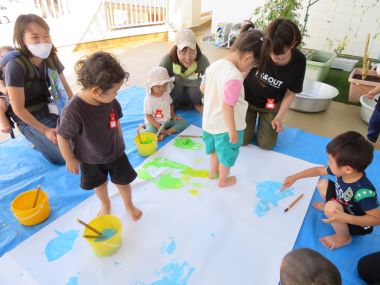 汚れを気にせず、全身で絵の具を楽しみました。