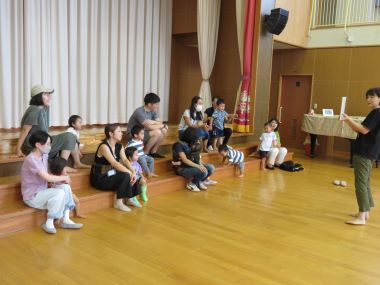 全身で遊び、汚れを洗ったり着替えたりした後は「お話の時間」今日の紙芝居は「アンパンマンとらくがきこぞう」でした。