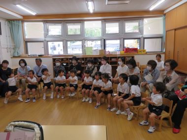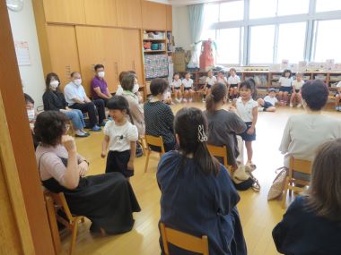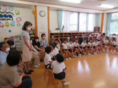 参観後は遊戯室で園長先生のお話と年長児の歌をお聞きいただきました。
