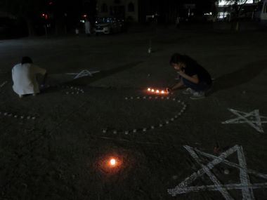 ろうそくの灯と花火の共演です。台風が心配されましたが、雨が降らなくてよかった!