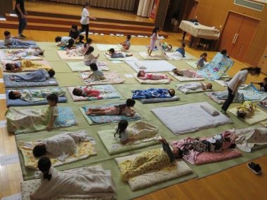 一晩中先生たちが交代でこども達を見守ります。「おやすみなさい」