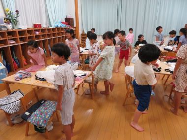 そして屋上に上がって涼んできました。年長さんの合宿の夜だからこそ楽しめること、沢山でした。楽しい時間はあっという間です。