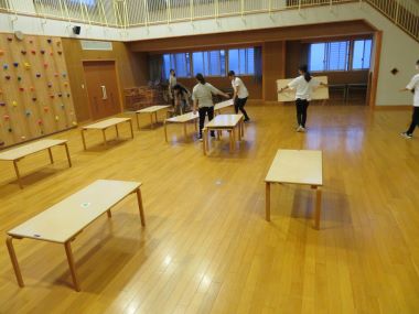 遊戯室は先生たちが準備して、朝食用の部屋にかわります。