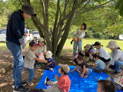 たくさん走った後はグランド周辺の探検をし、どんぐりや松ぼっくりを見つけました。どんなものが採れたか見せ合い、お土産ができて嬉しそうでした。