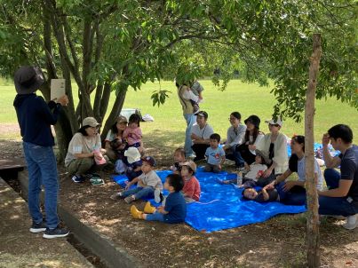 最後に木陰で紙芝居を見て、楽しい戸外でのさくらんぼが終わりました。