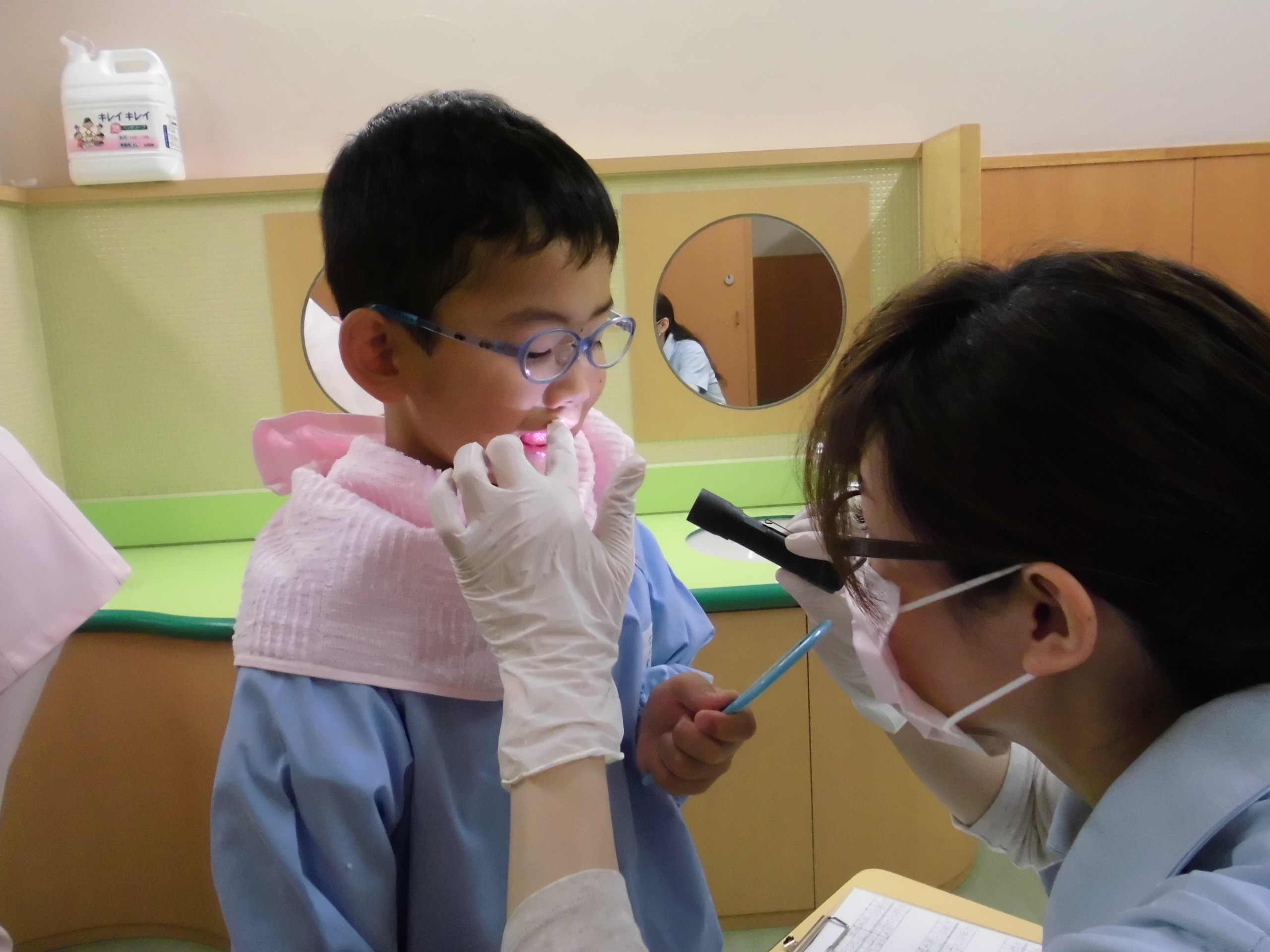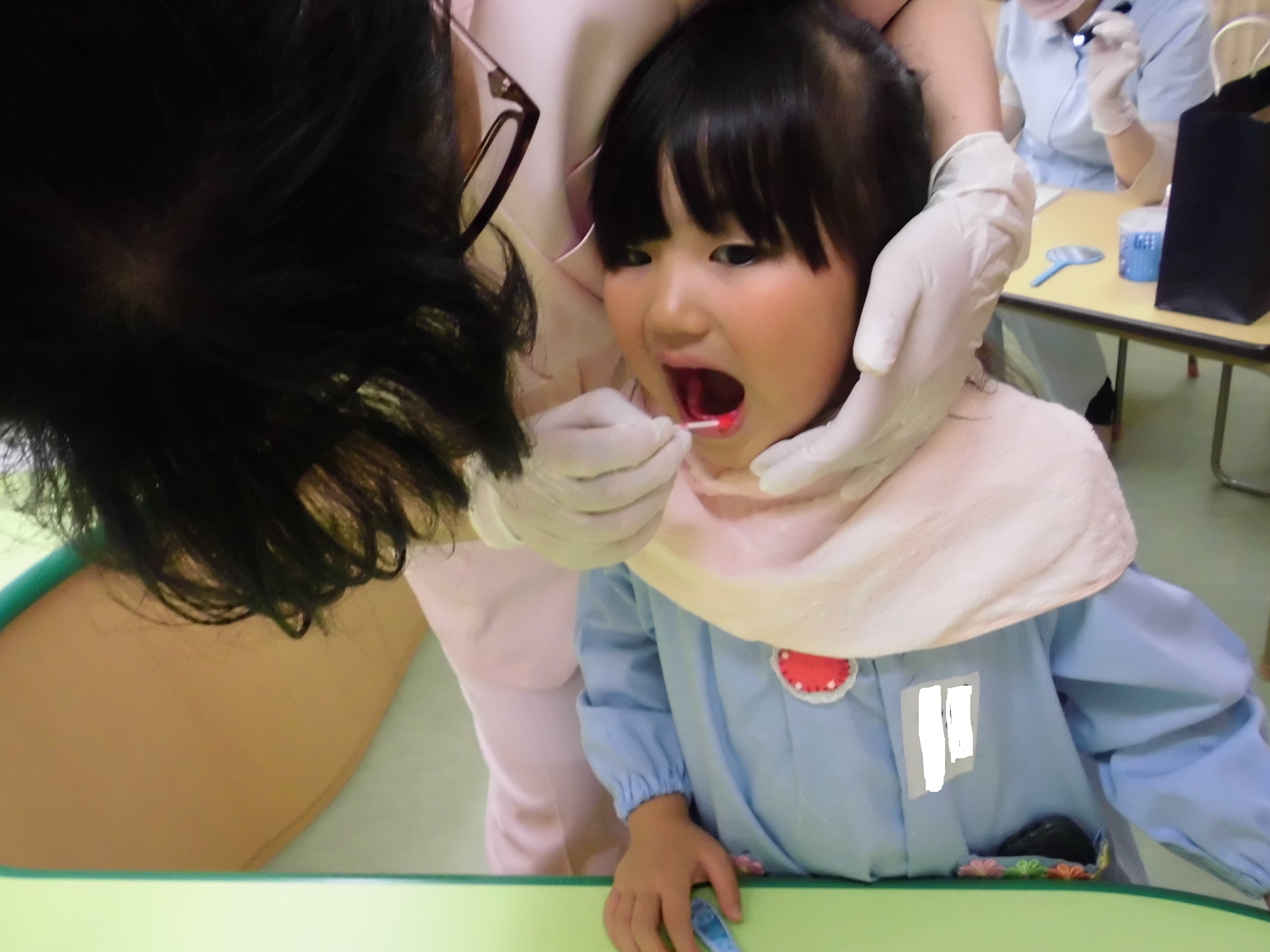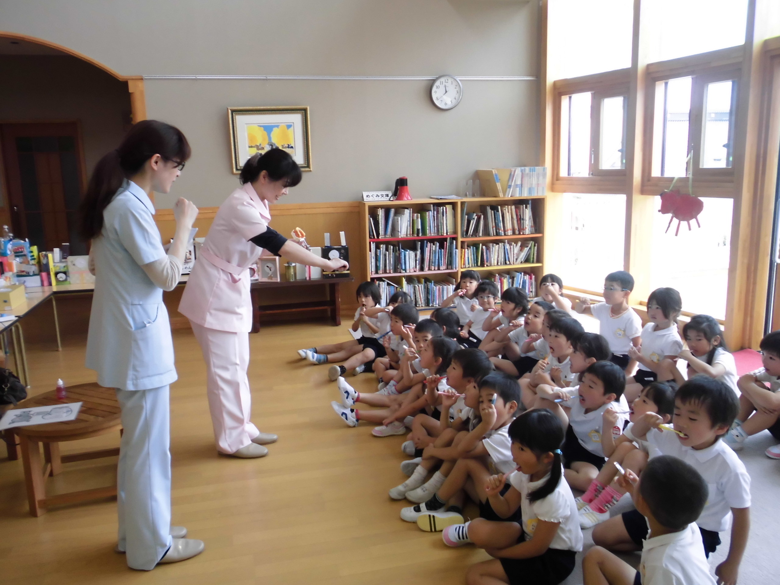 6月17日(水)、園医の上松歯科医院さんのご協力で、年長児が歯磨き指導を受けました。