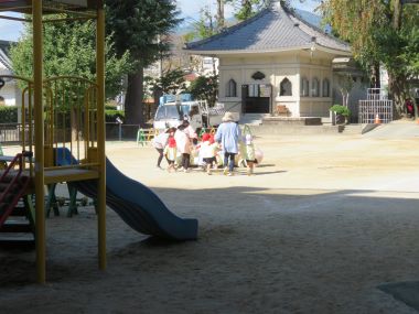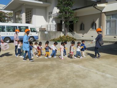 12日、地震の避難訓練がありました。園ではひと月に1回、地震や火事の避難訓練を行っています。