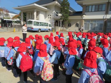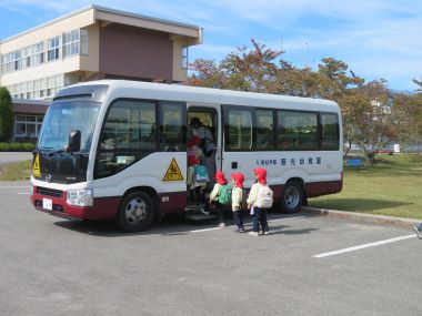 帰る時間になりました。年少さんはバスで園まで向かいます。