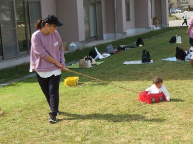 一足先に親子で短大に集合していた未満児のお友だちは先生やお友だちと遊びます。